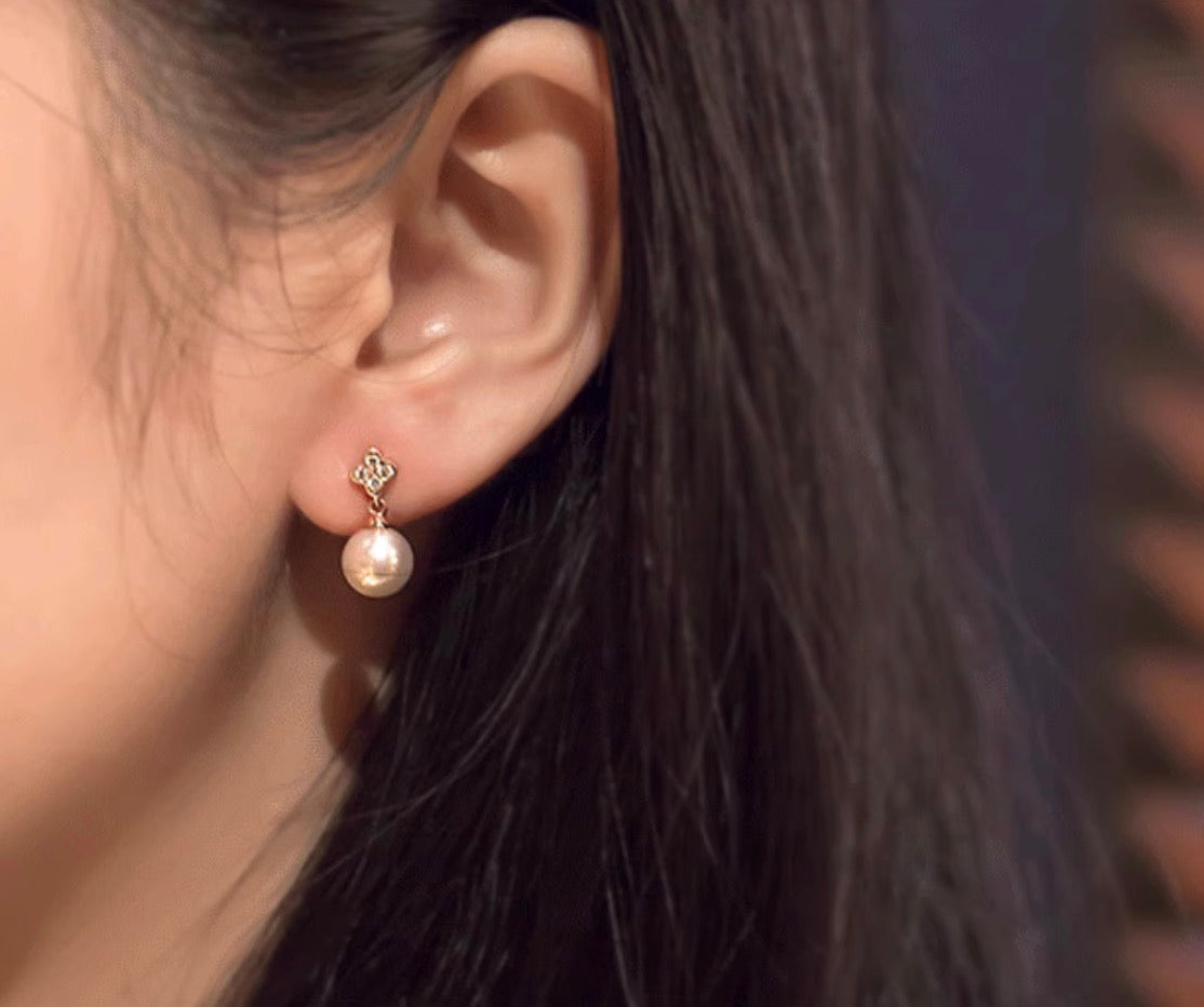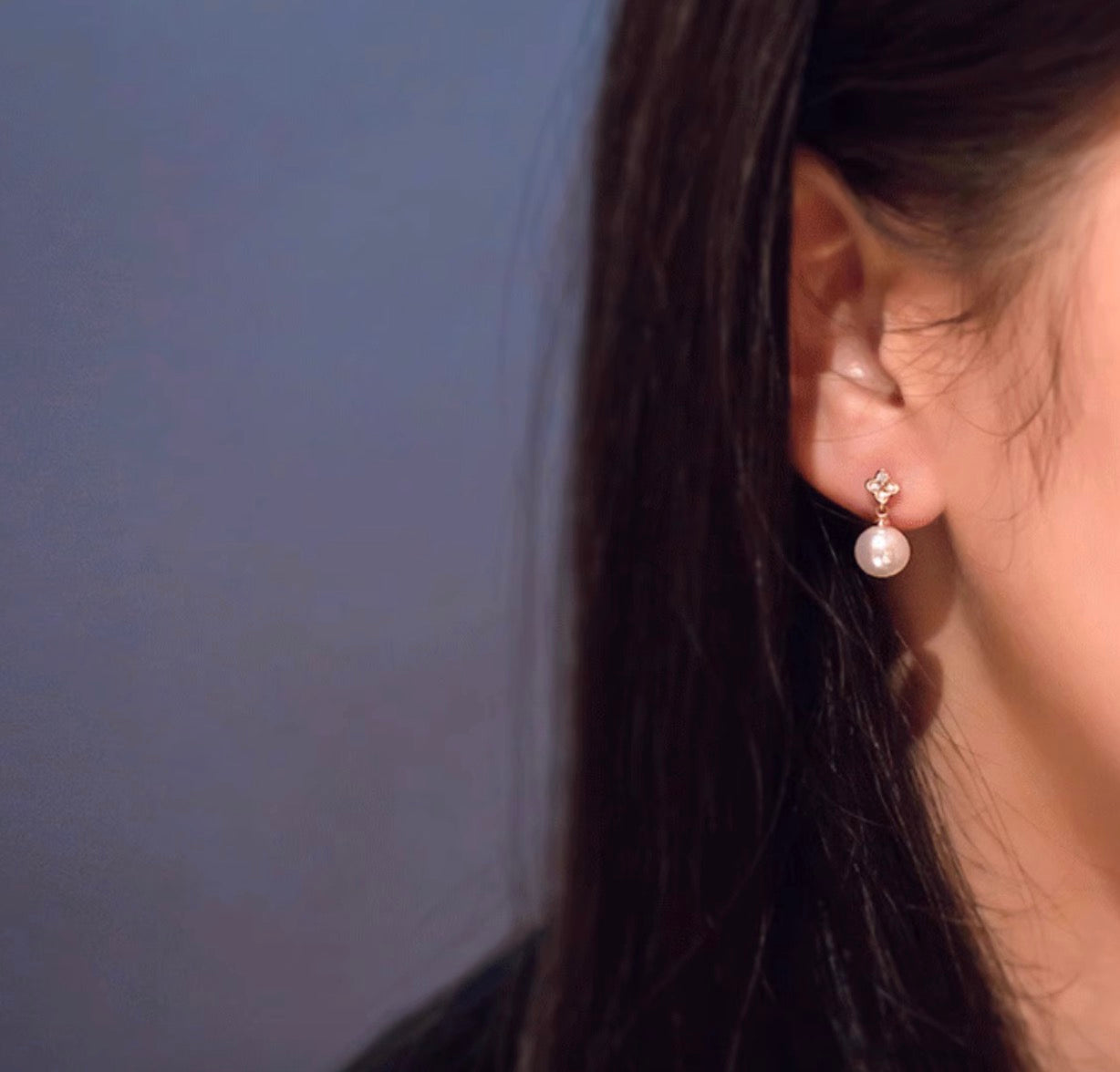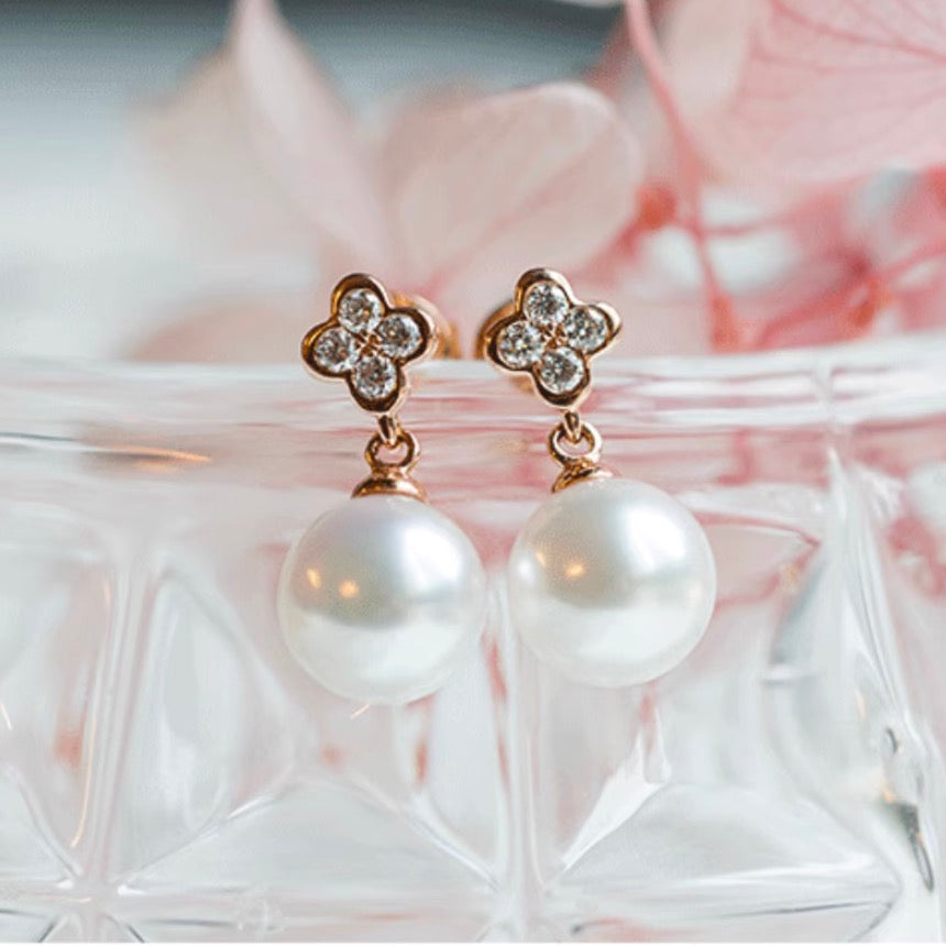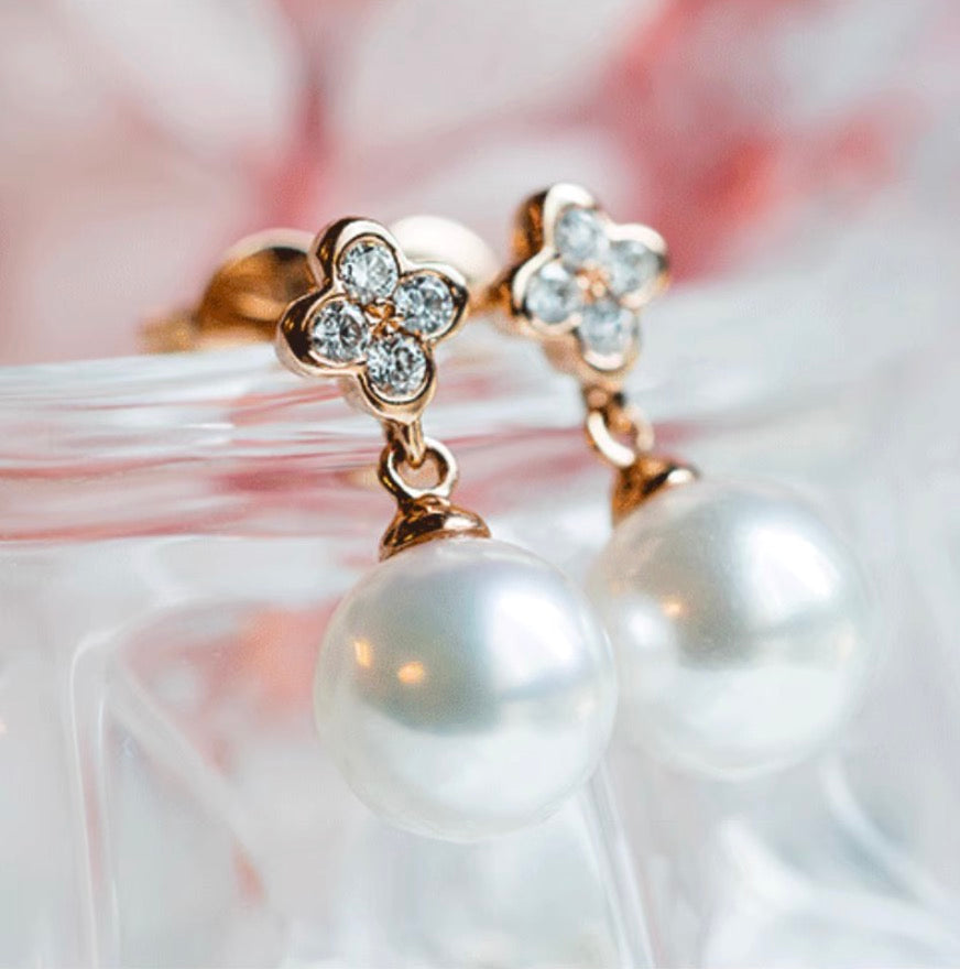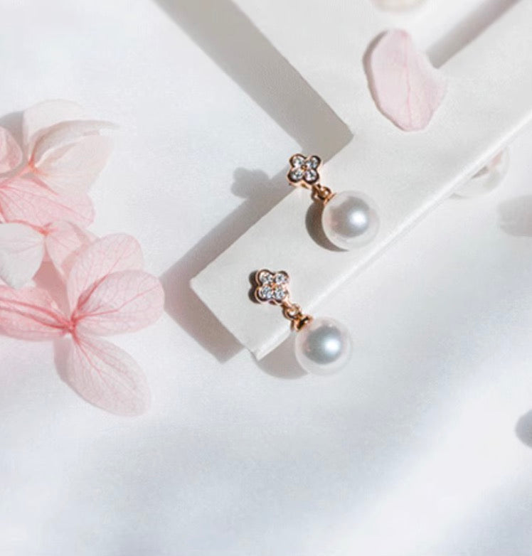 K18PG ホワイトパール ピンクゴールド 18K 白蝶真珠 ダイヤモンド ダイヤ PG K18 ピアス スタッドピアス クローバー 四ツ葉 四つ葉 揺れる