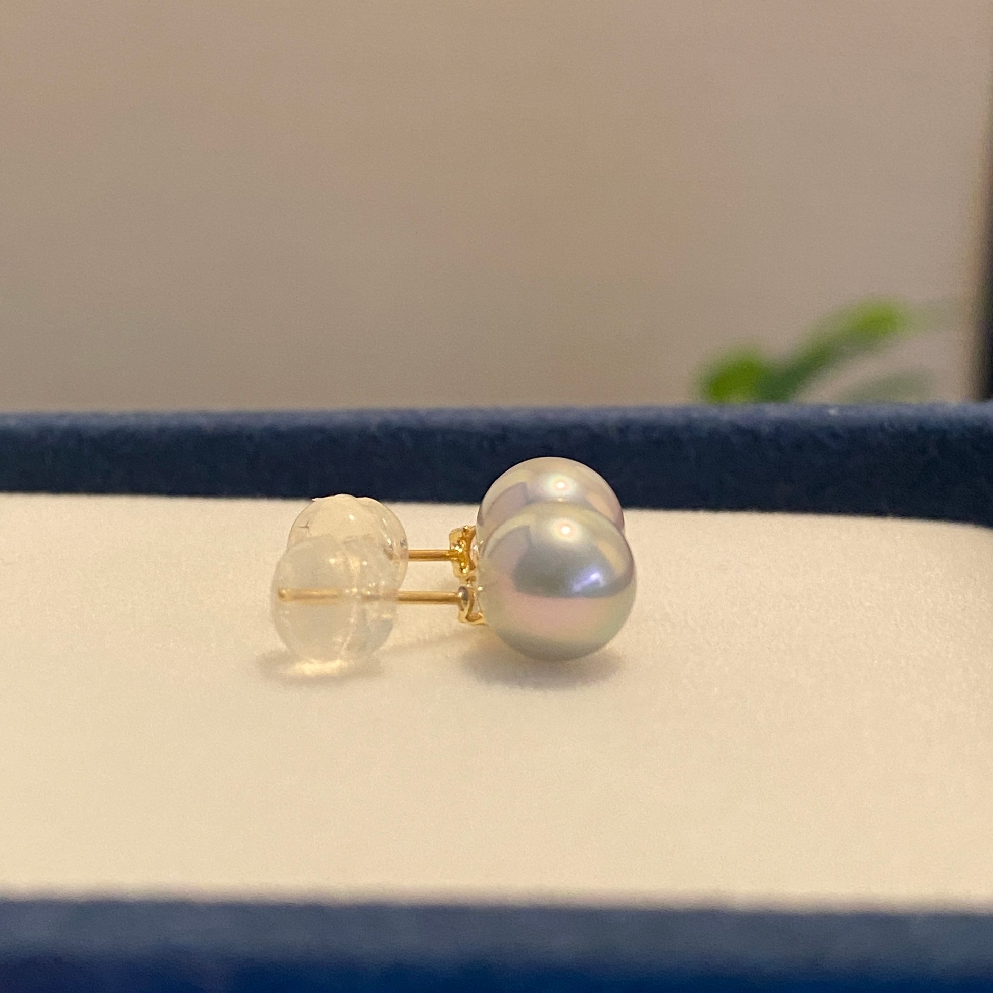 K18YG あこや真珠 灰色あこや ピアス スタッドピアス グレーパール 18K 18金 灰色アコヤ イエローゴールド グレー 灰色 シルバー
