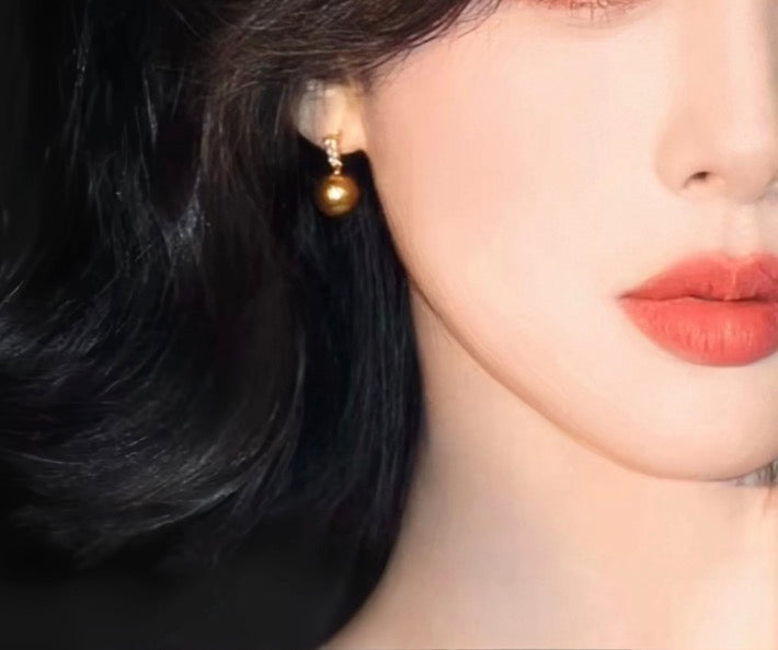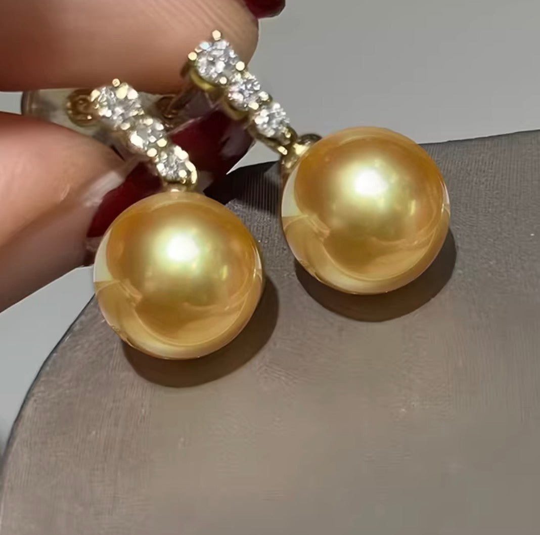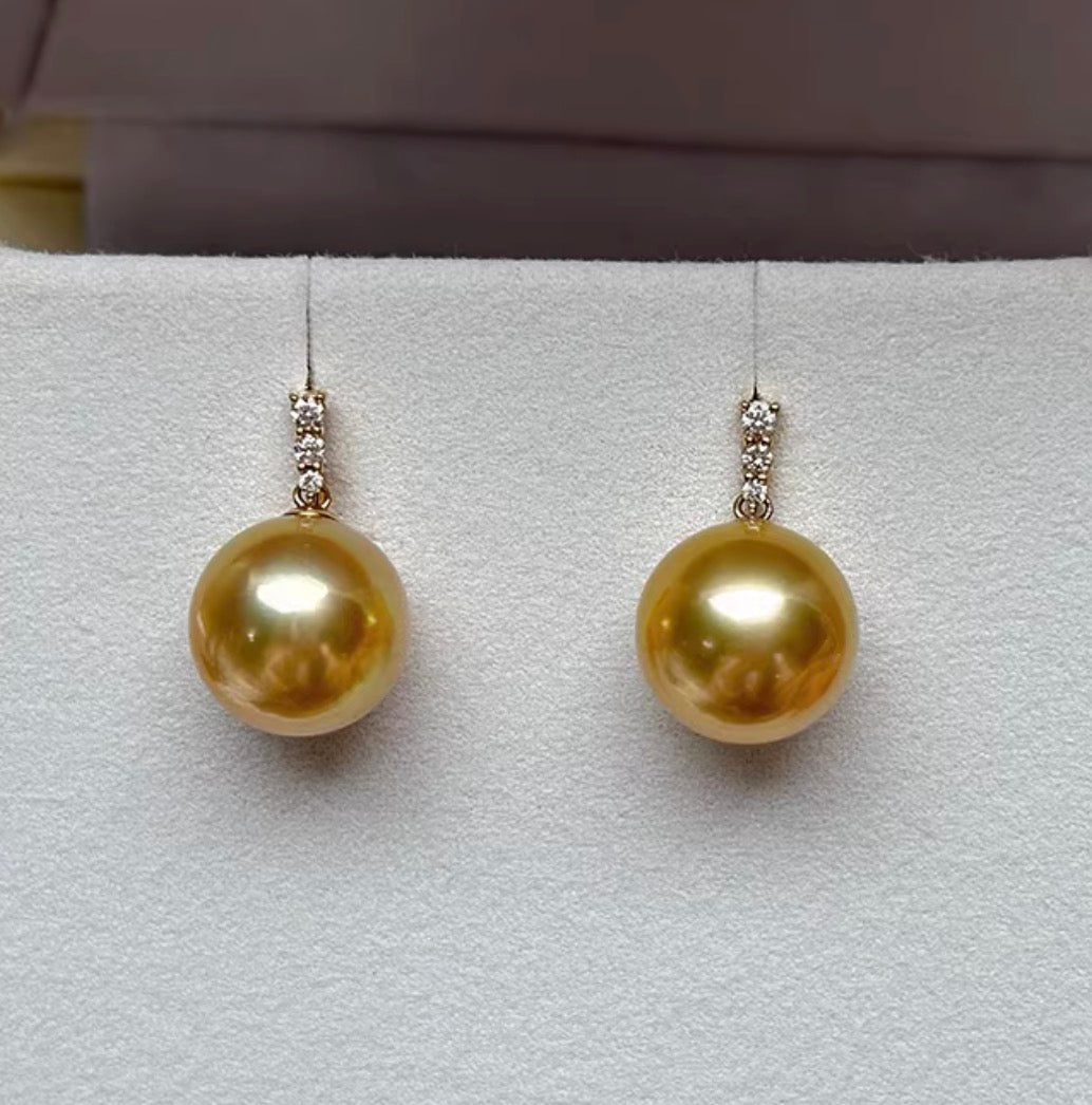 K18YG ゴールデンパール 南洋真珠 イエローゴールド 18K ピアス 揺れる 金色 スタッドピアス ゴールドパール