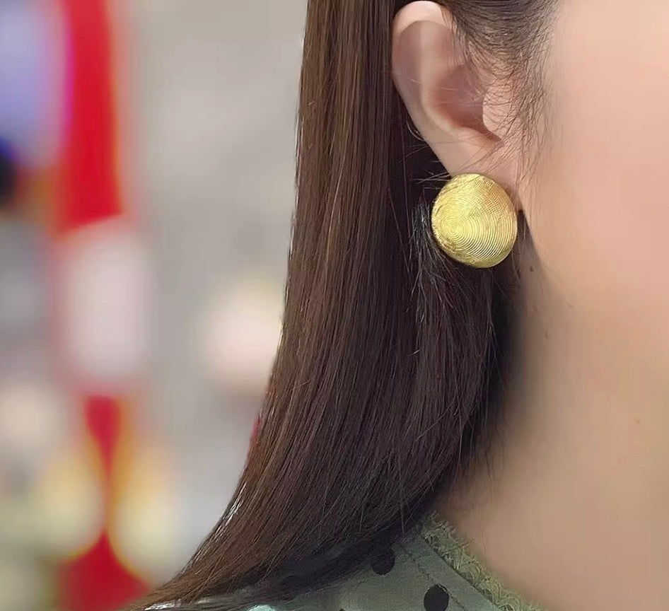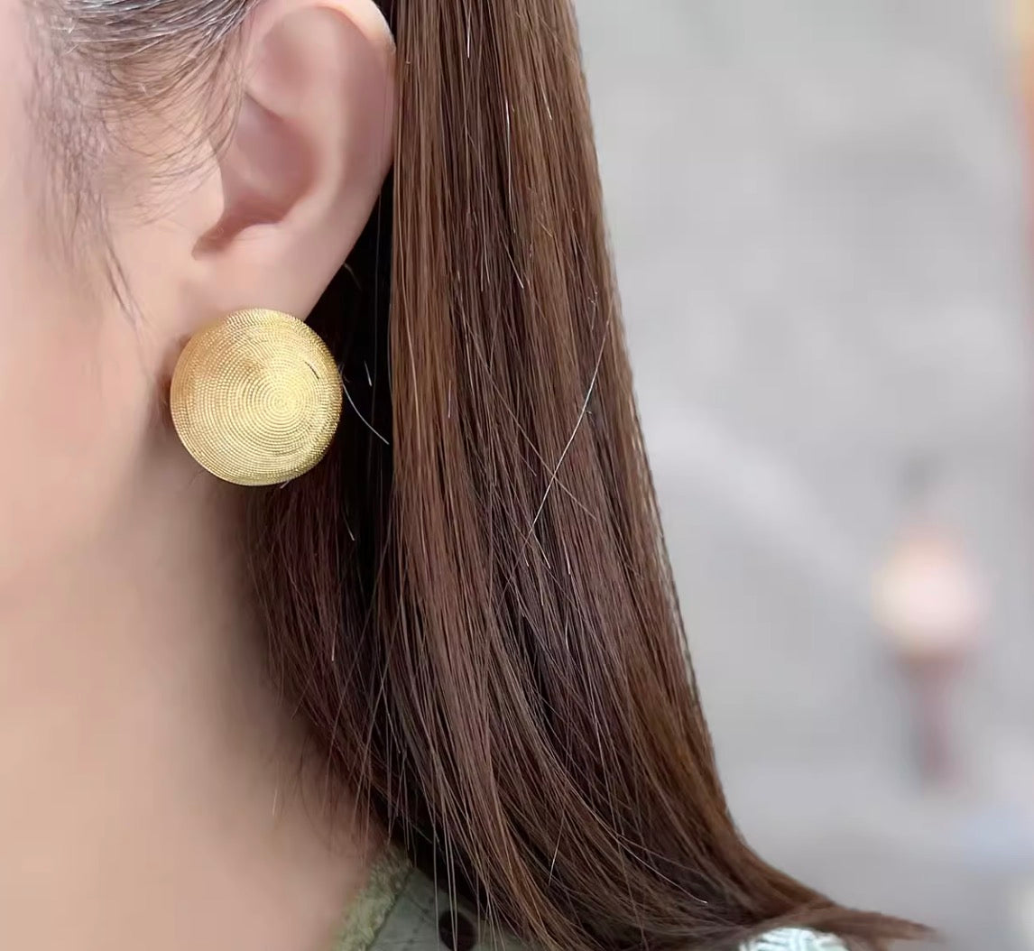 K18YG ピアス スタッドピアス 大ぶり 円形 ラウンド 丸 18K 18金 YG K18 イエローゴールド 中空ピアス 中空 つや消し 艶消し 模様
