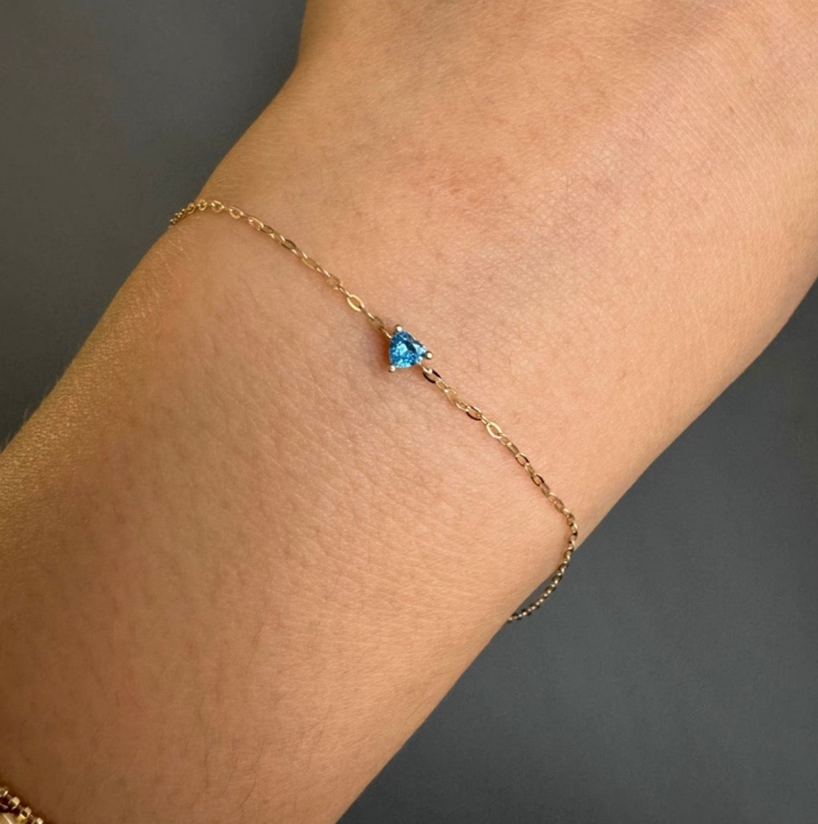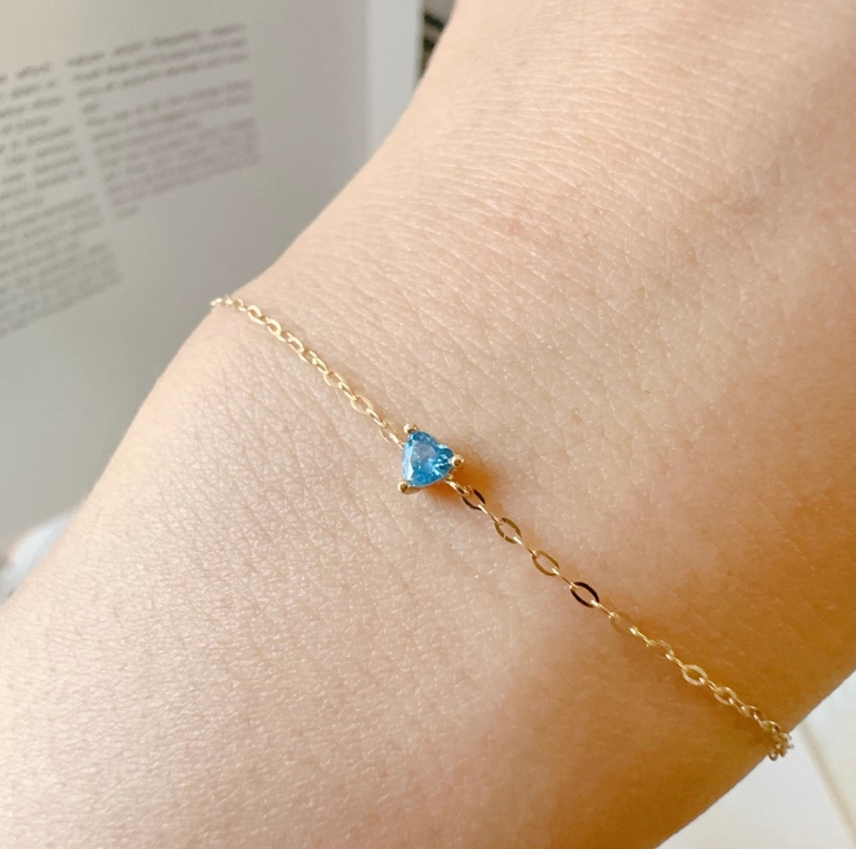 K14YG アクアマリン ブレスレット 14K ブレス イエローゴールド ハート ハート型 スクエア ワンポイント 細め シンプル