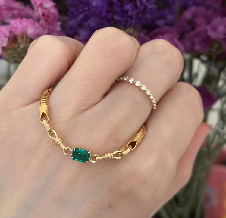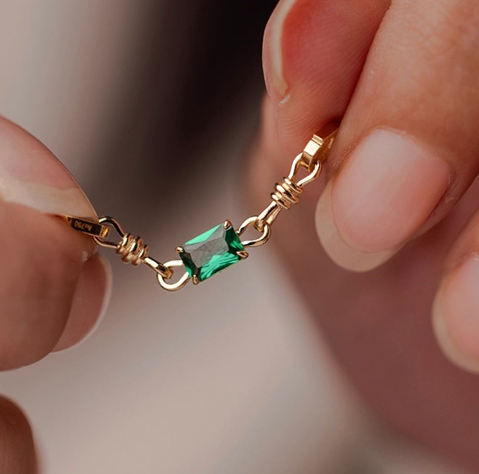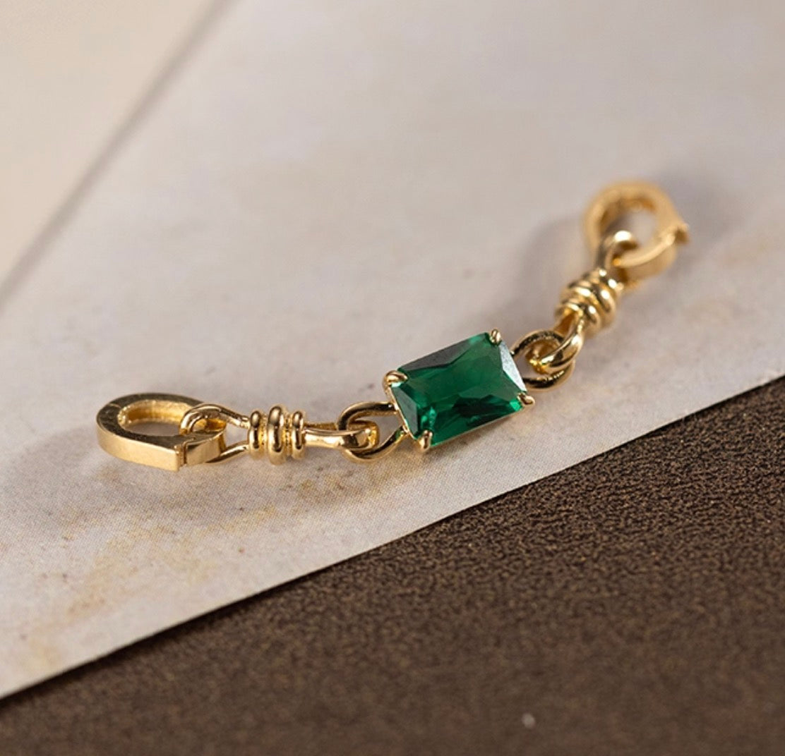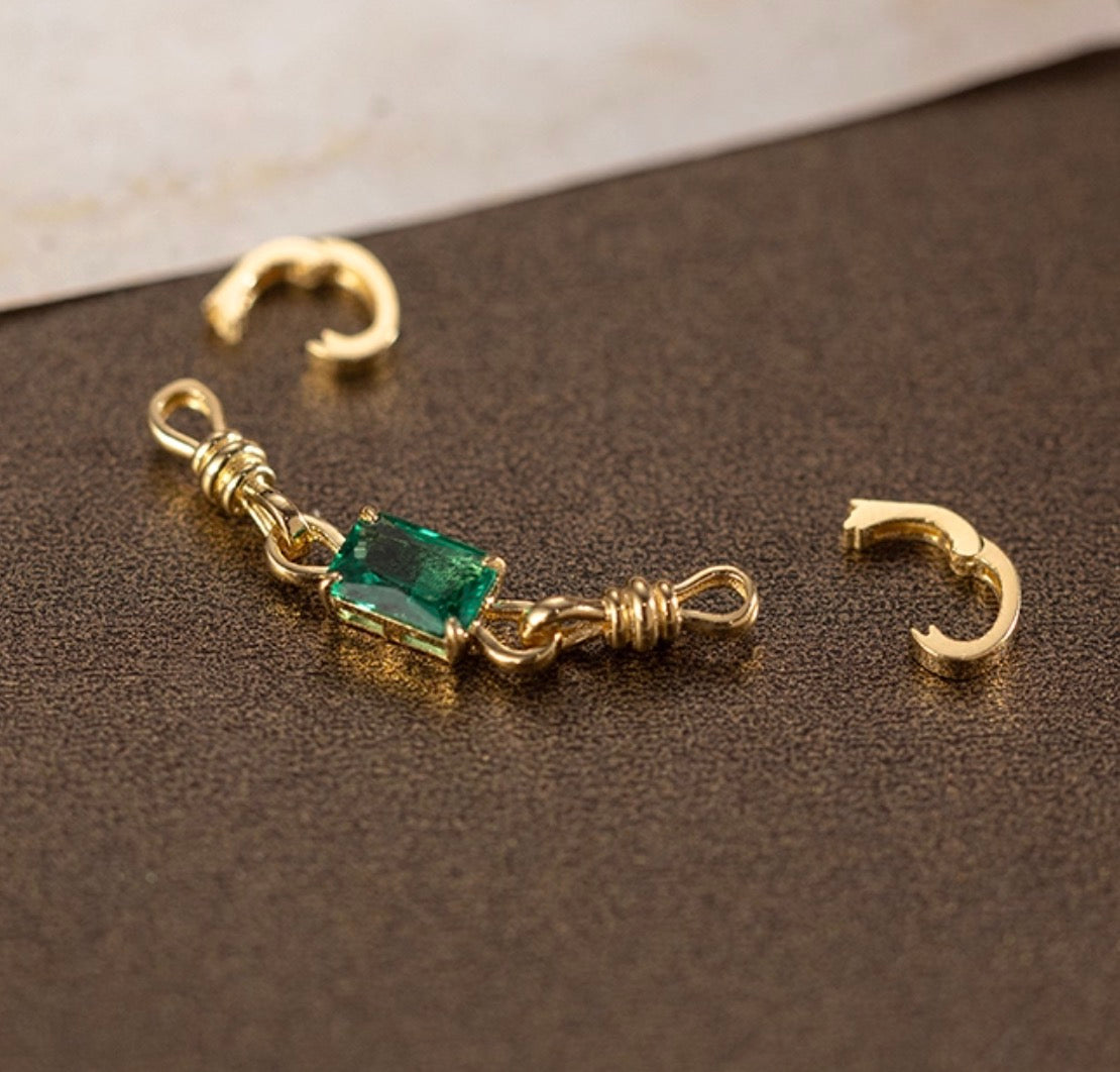 K18YG 合成エメラルド ひきわ ヒキワ 引き輪 チェーンパーツ バチカン 繋ぎ チャーム ネックレスチャーム YG イエローゴールド 18金 18K