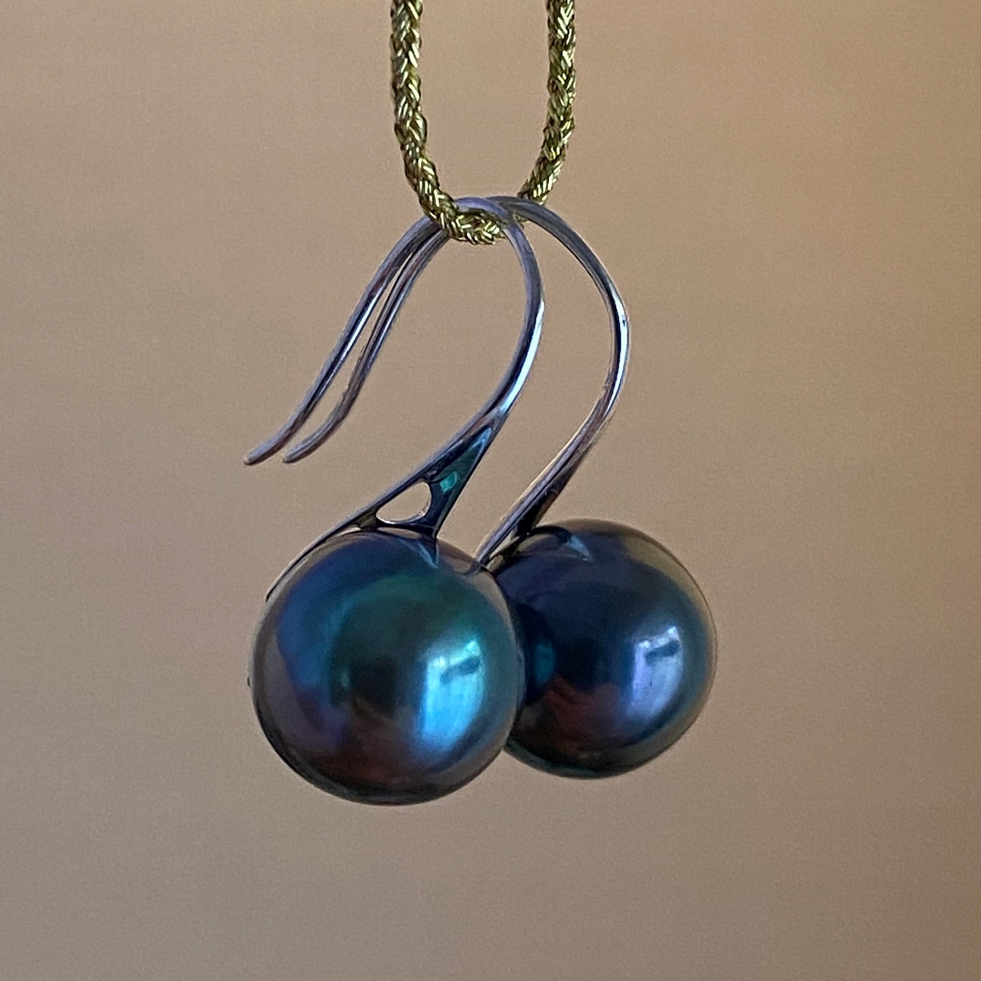 K18WG 黒蝶真珠 ピーコックグリーン フックピアス 18K ホワイトゴールド ピアス 一粒 ピーコック タヒチアンパール