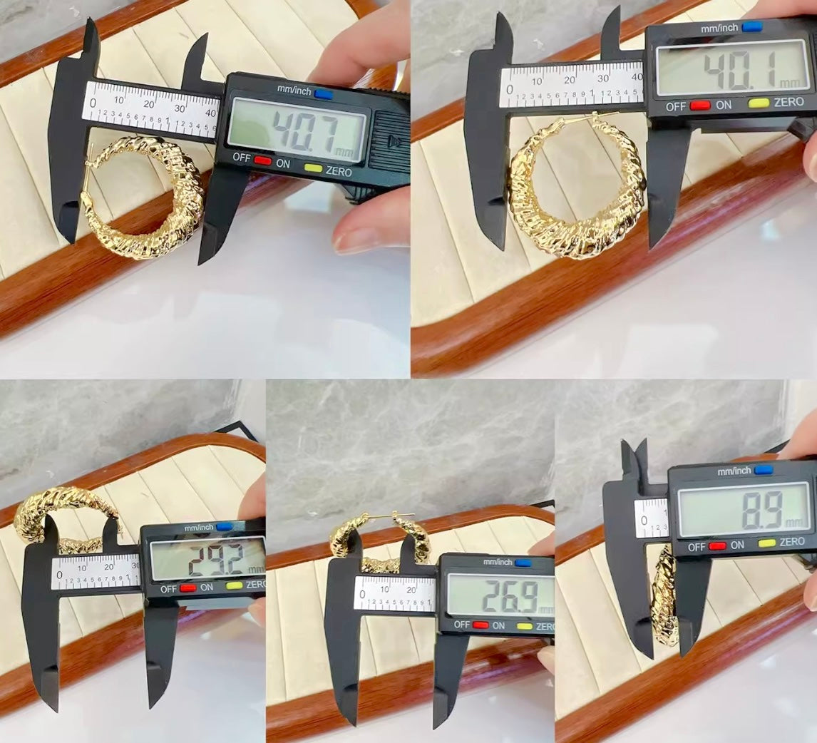 K18YG バロック リングピアス フープピアス 中空ピアス イエローゴールド 凸凹 模様 くしゃくしゃ 18K 18金 YG ピアス