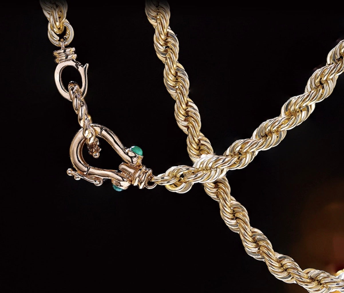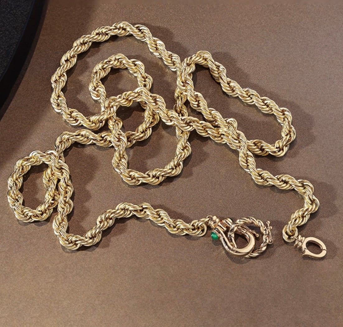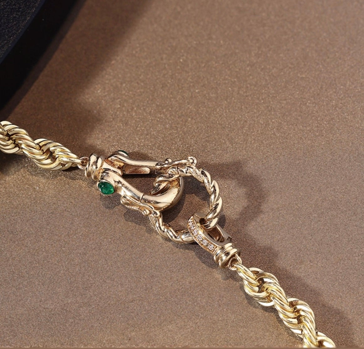K18YG スネークチェーン 蛇 エメラルド ネックレス 2.7mm 50cm 18K YG イエローゴールド 太め スネークネックレス メンズ レディース 18金 ホースシュー 馬蹄