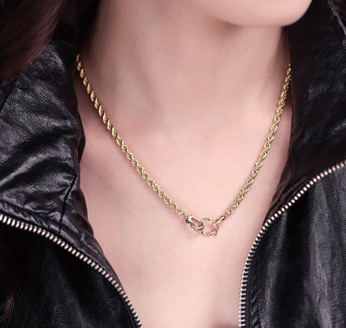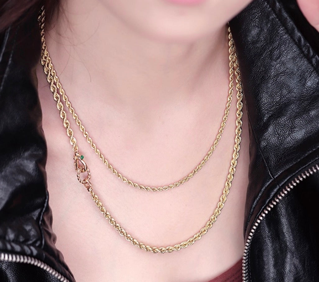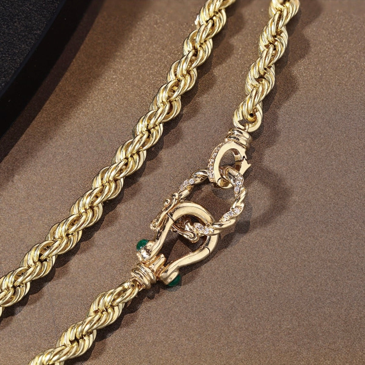 K18YG スネークチェーン 蛇 エメラルド ネックレス 2.7mm 50cm 18K YG イエローゴールド 太め スネークネックレス メンズ レディース 18金 ホースシュー 馬蹄