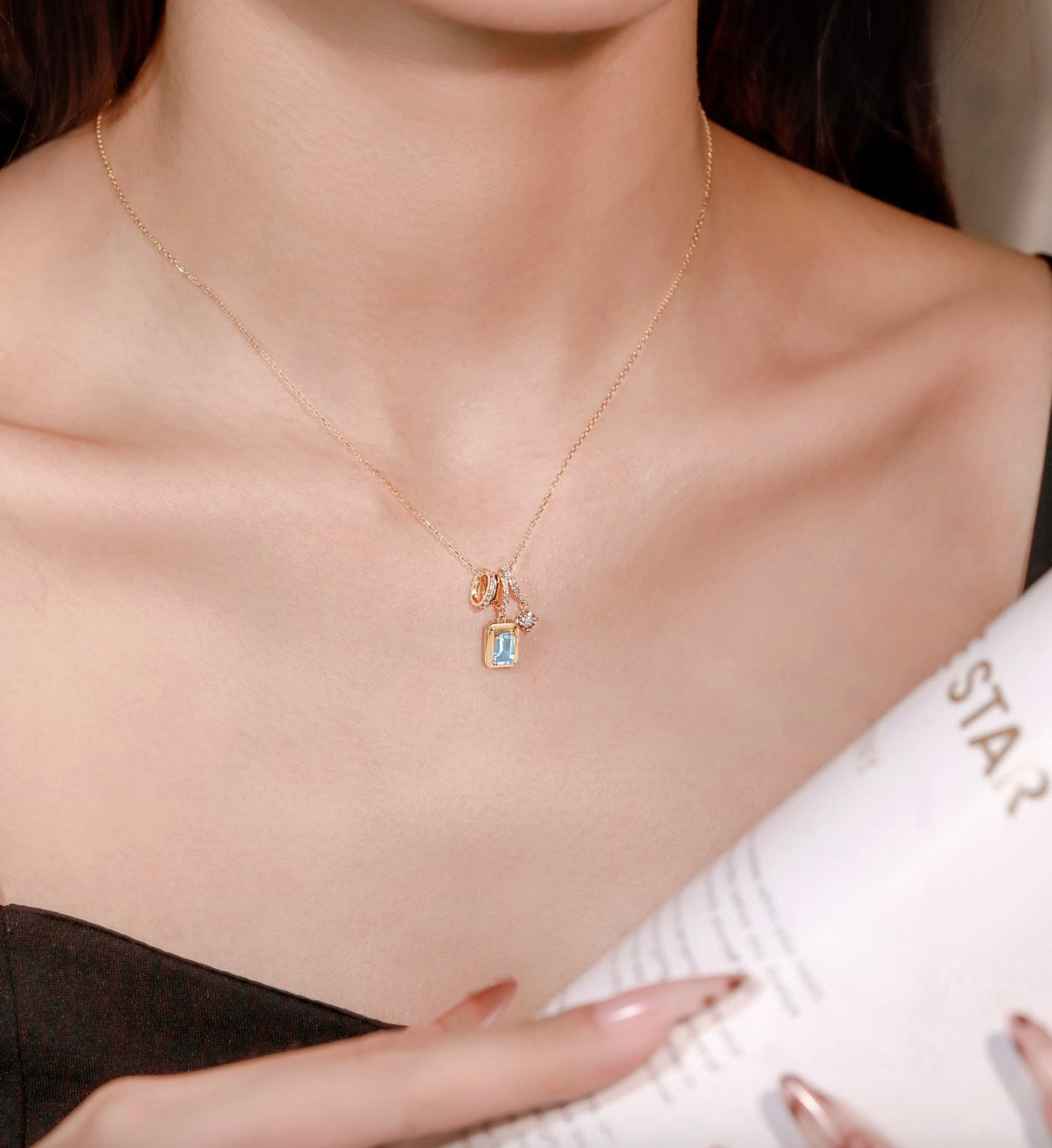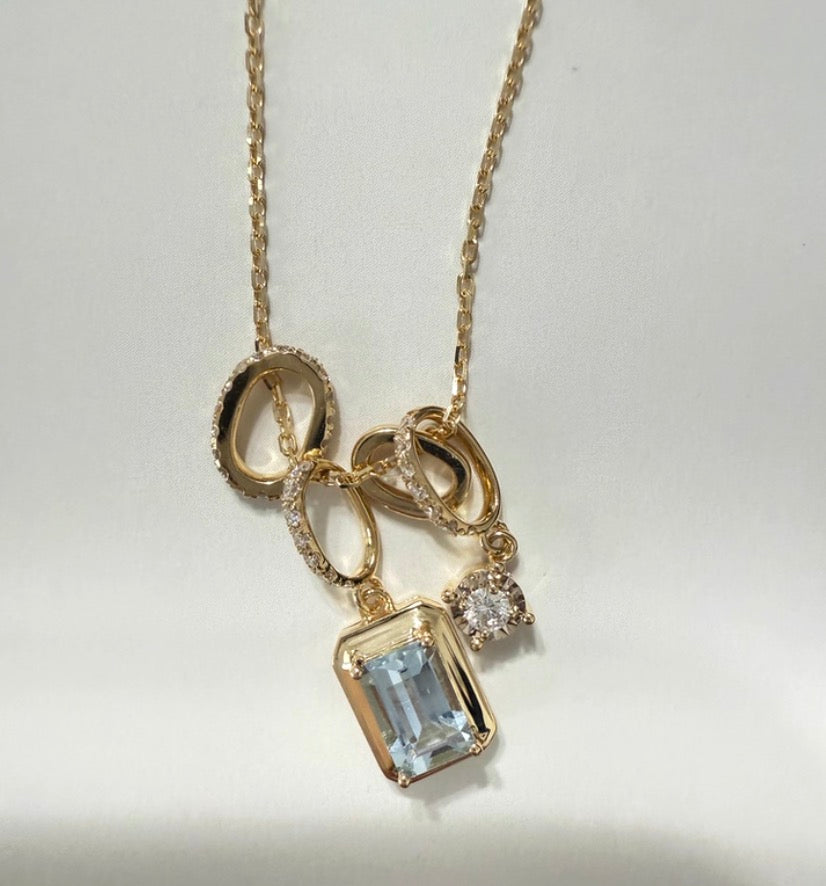 K18YG ペンダント ダイヤモンド アクアマリン イエローゴールド ネックレス チャームセット ネックレスチャーム イエローゴールド 18金 18K