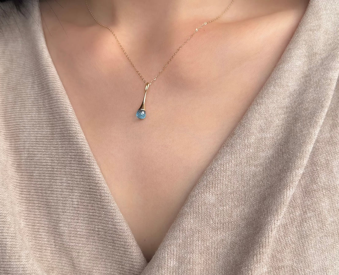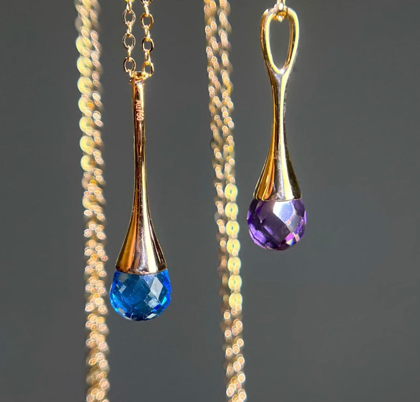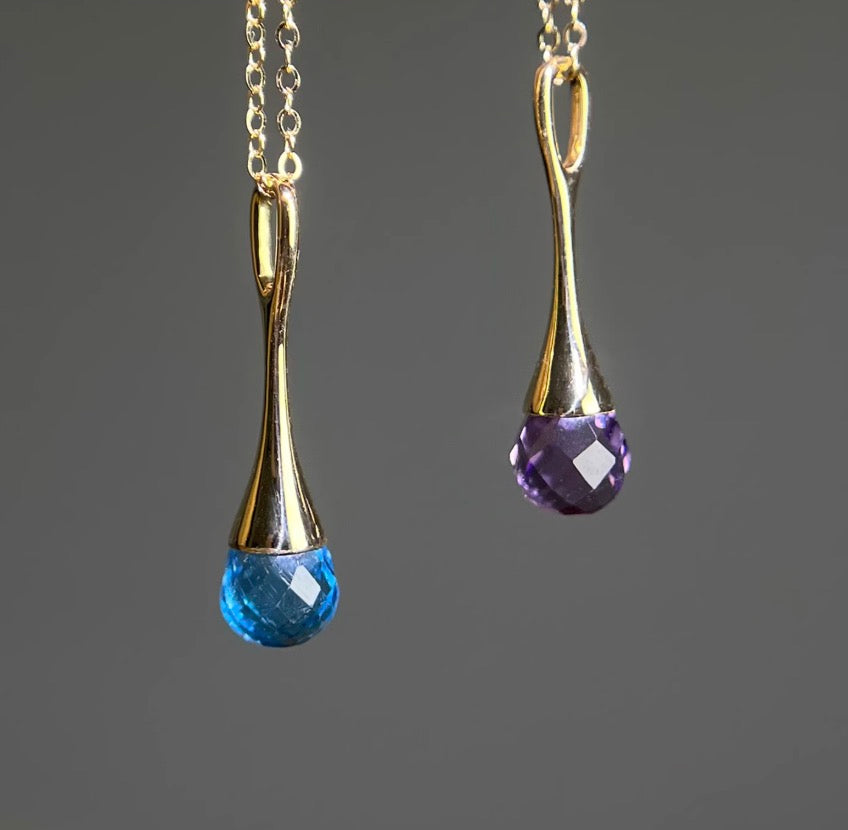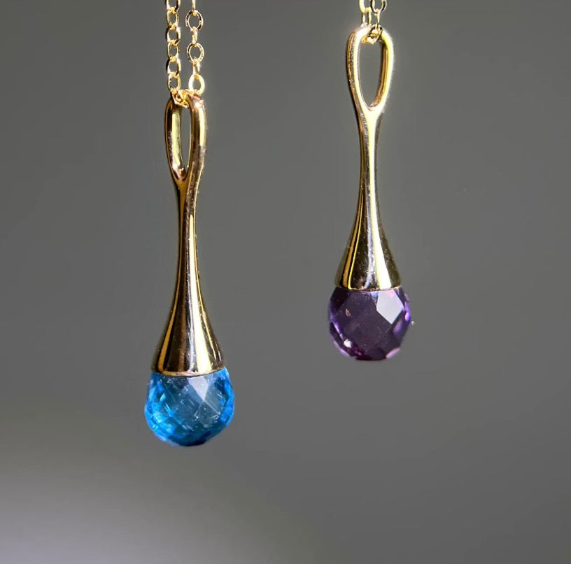 K18YG ペンダント ブルートパーズ アメジスト ティアドロップ 雫 涙 YG イエローゴールド 18金金 18K トパーズ 青 ブルー 紫水晶