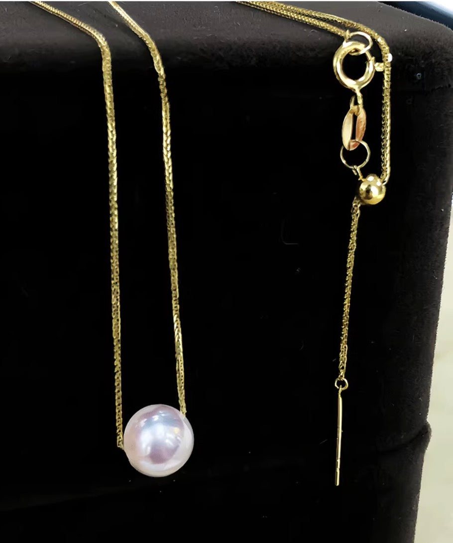 K18YG あこや真珠 ゴールデンパール ネックレス 2way ツインパール ペンダント 双子 スルー 18K ベネチアンチェーン ボックスチェーン