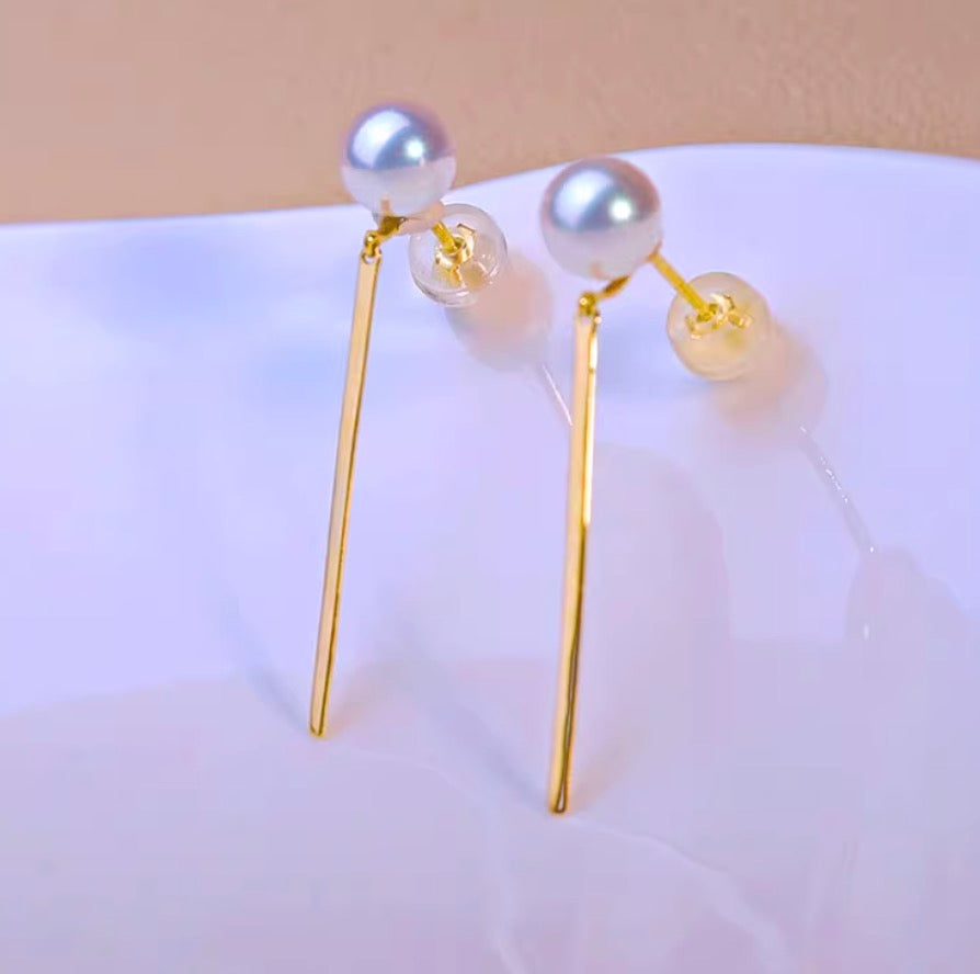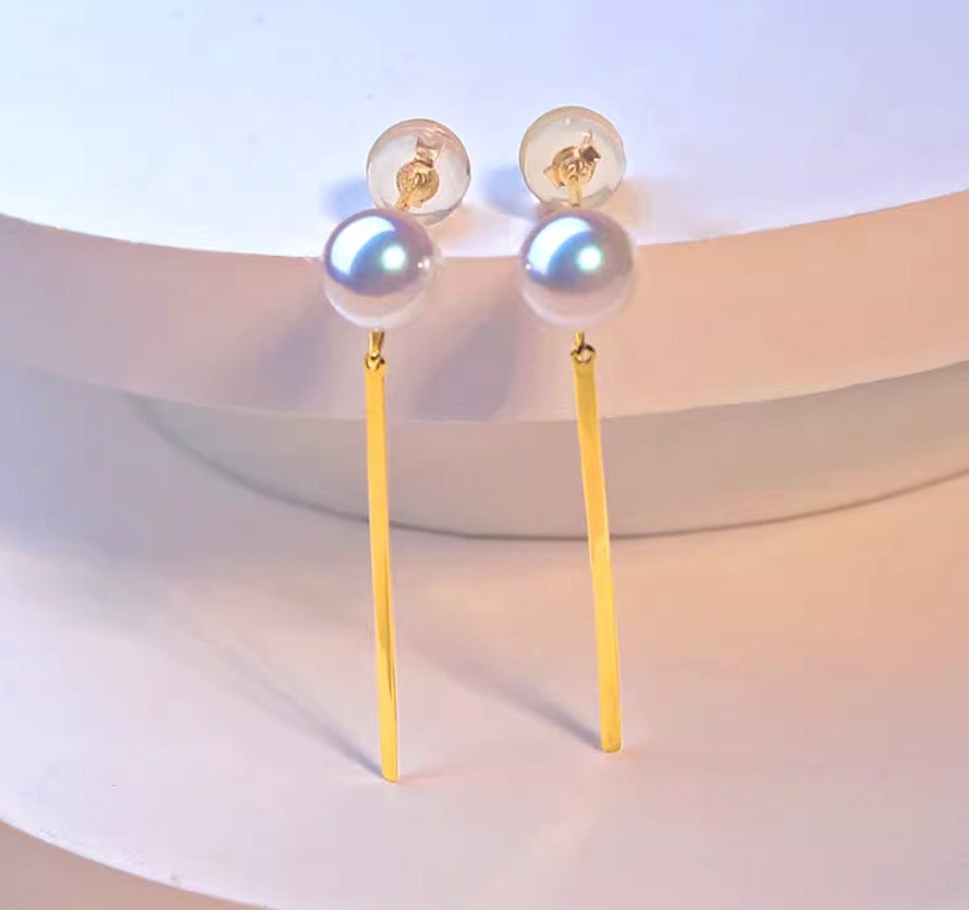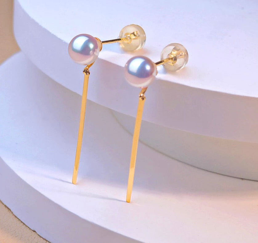 K18YG あこや真珠 パール ピアス スタッドピアス 揺れる スティック イエローゴールド アコヤ真珠 ロングピアス プレート