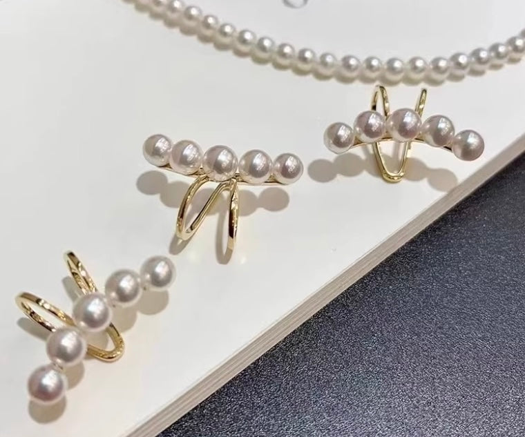 K18YG あこや真珠 彩凛珠 イヤーカフ イヤリング スマイル アコヤ 18K 5玉 5珠 5連 ベビーパール ベイビーアコヤ