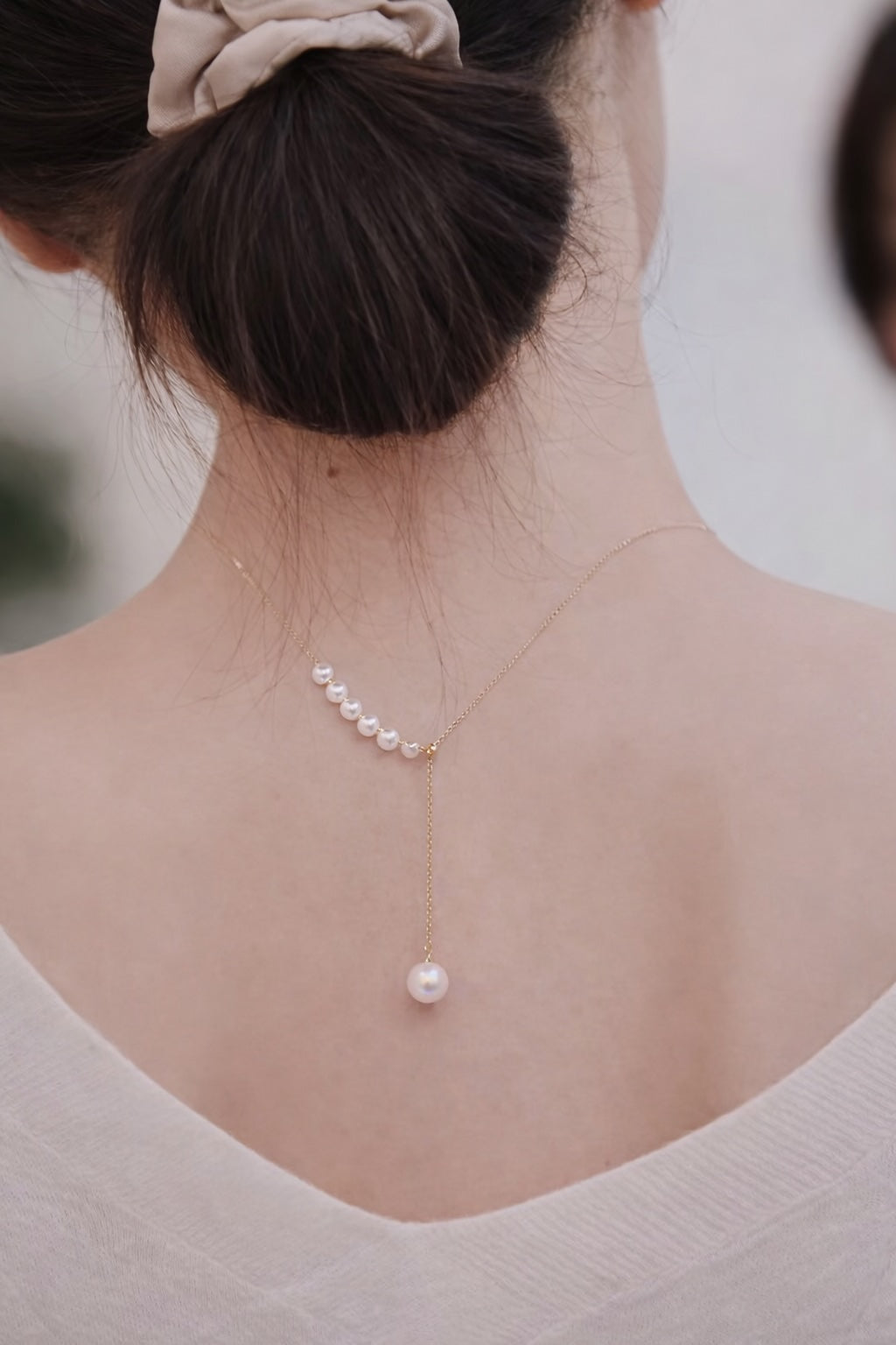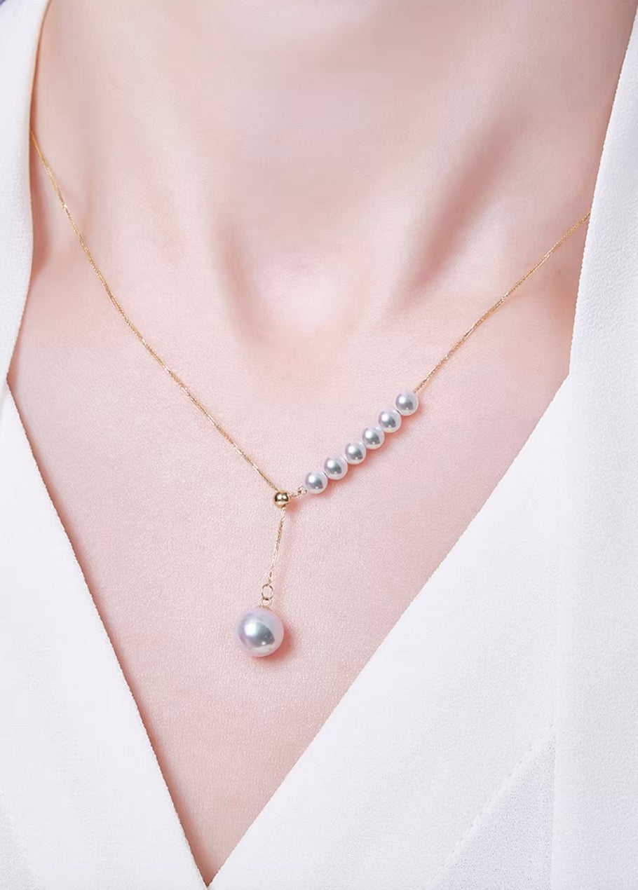 K18YG あこや真珠 2way スライド式アジャスターチェーン ショパンチェーン パール ネックレス Y字 ペンダント YG 18K あこや アコヤ真珠