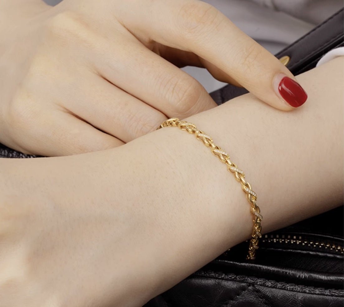 K18YG K18PG ブレスレット ツイスト ウェーブ 18K シンプル キラキラ 細め シンプル X ダイヤモンド ダイヤ イエローゴールド ピンクゴールド オーダージュエリー オーダーメイドジュエリー