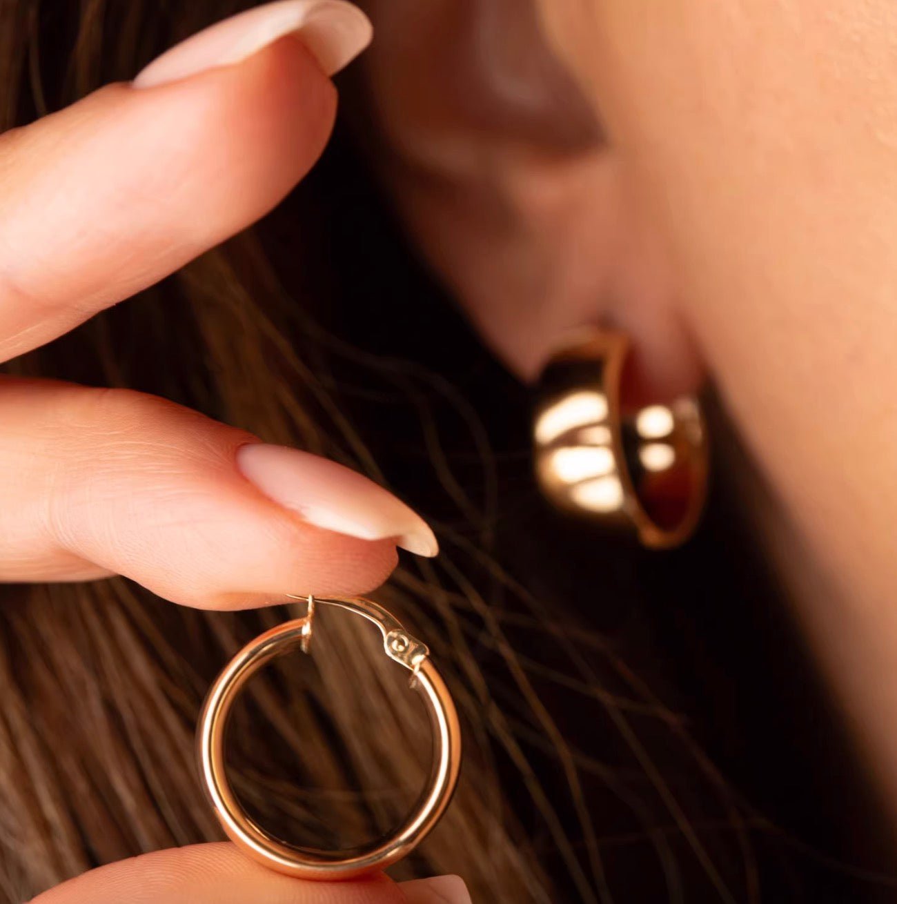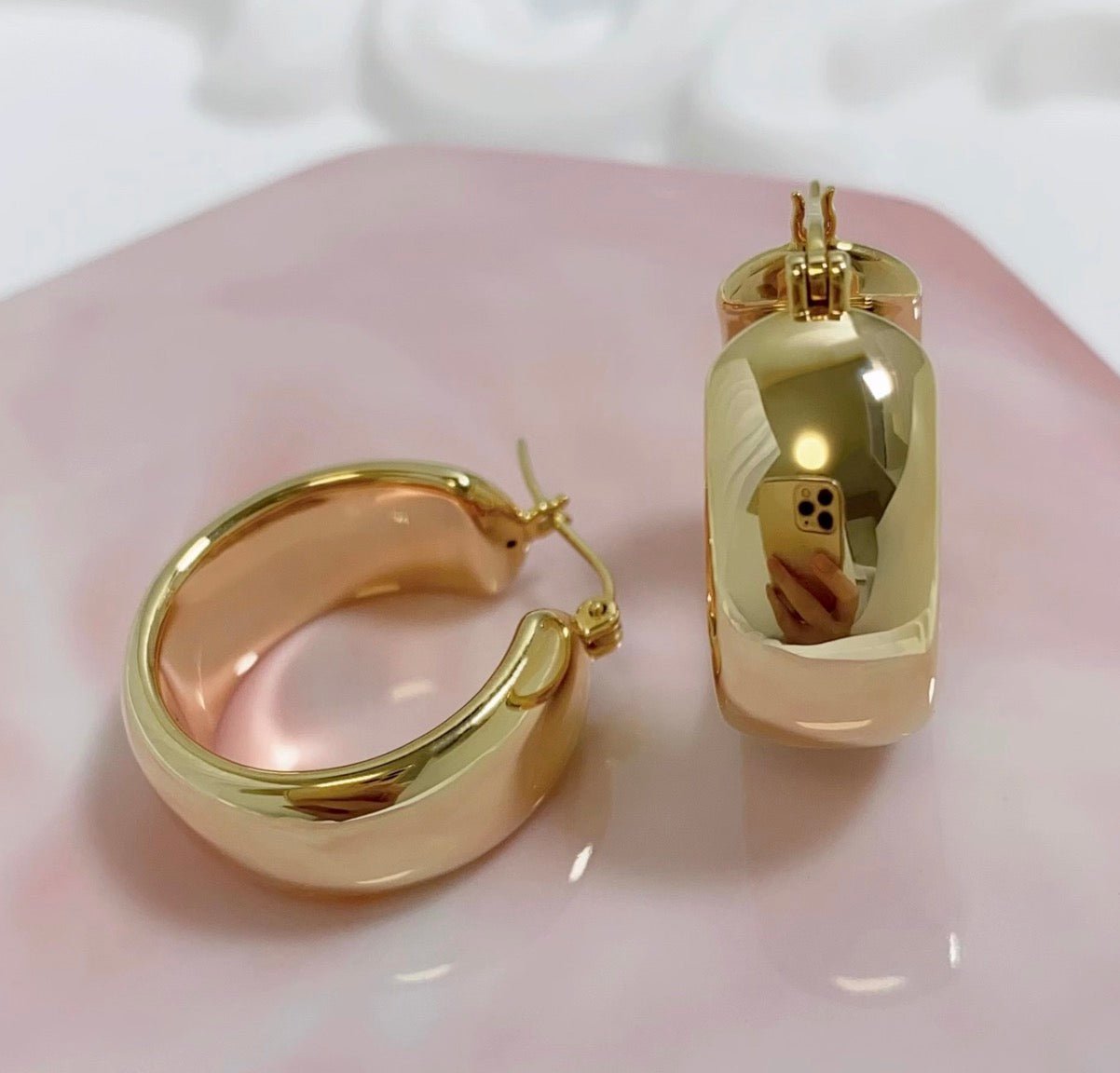 K18YG WG リングピアス 鏡面 イエローゴールド ホワイトゴールド 18K 18金 ピアス 中空ピアス フープピアス 24mm