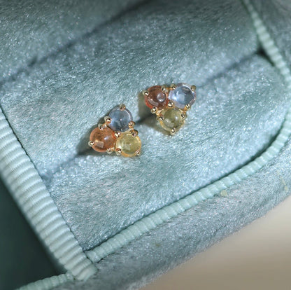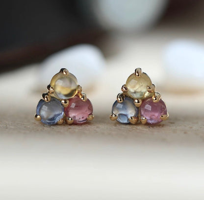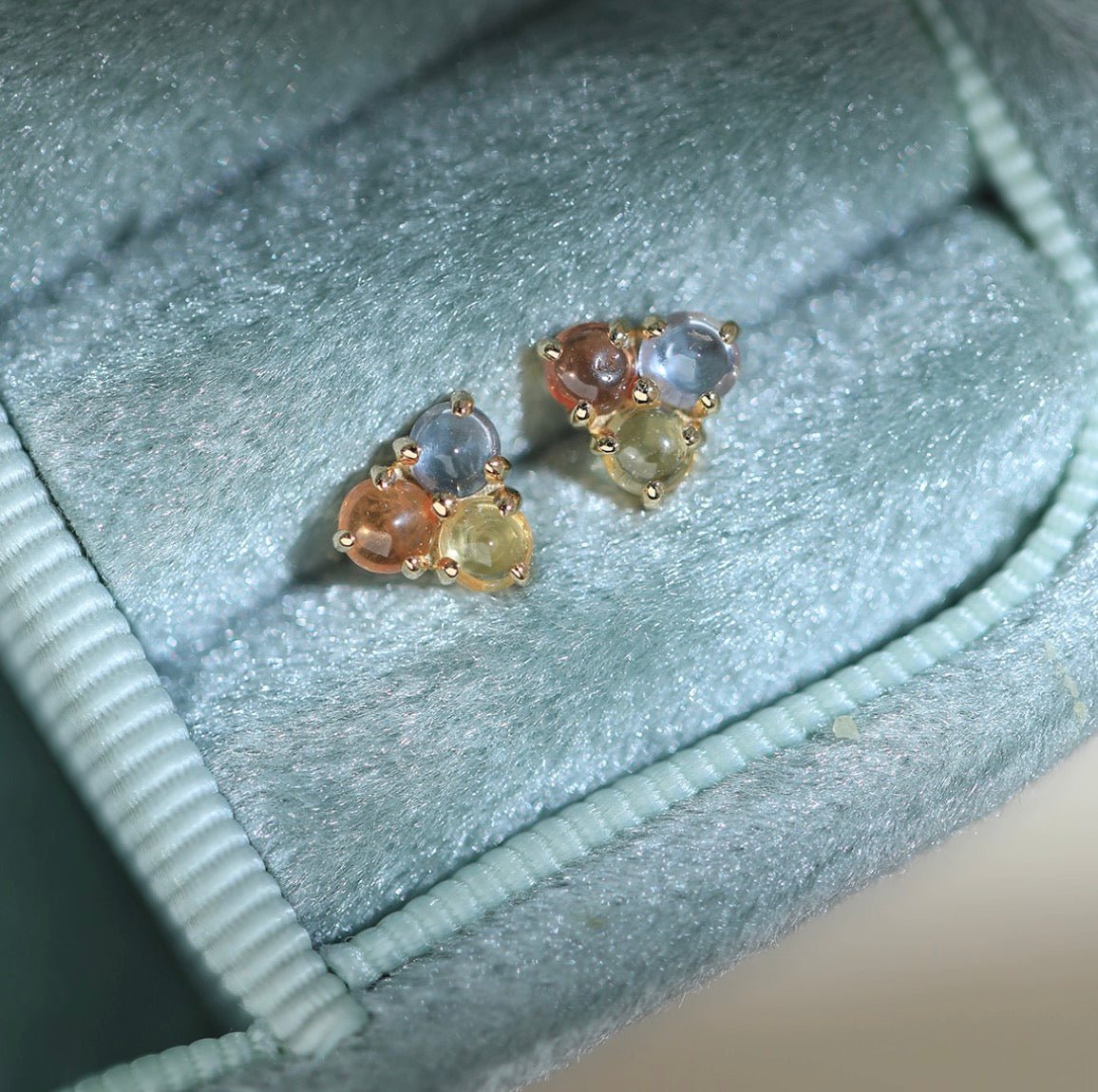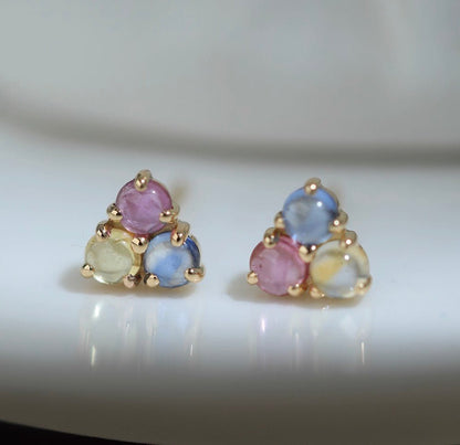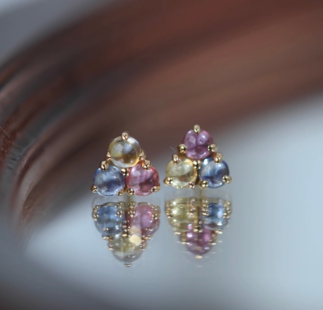 K18YG サファイア カボション ミニ スタッドピアス トライアングル イエローゴールド 18K 18金 ピアス 3色 イエロー ピンク ブルー
