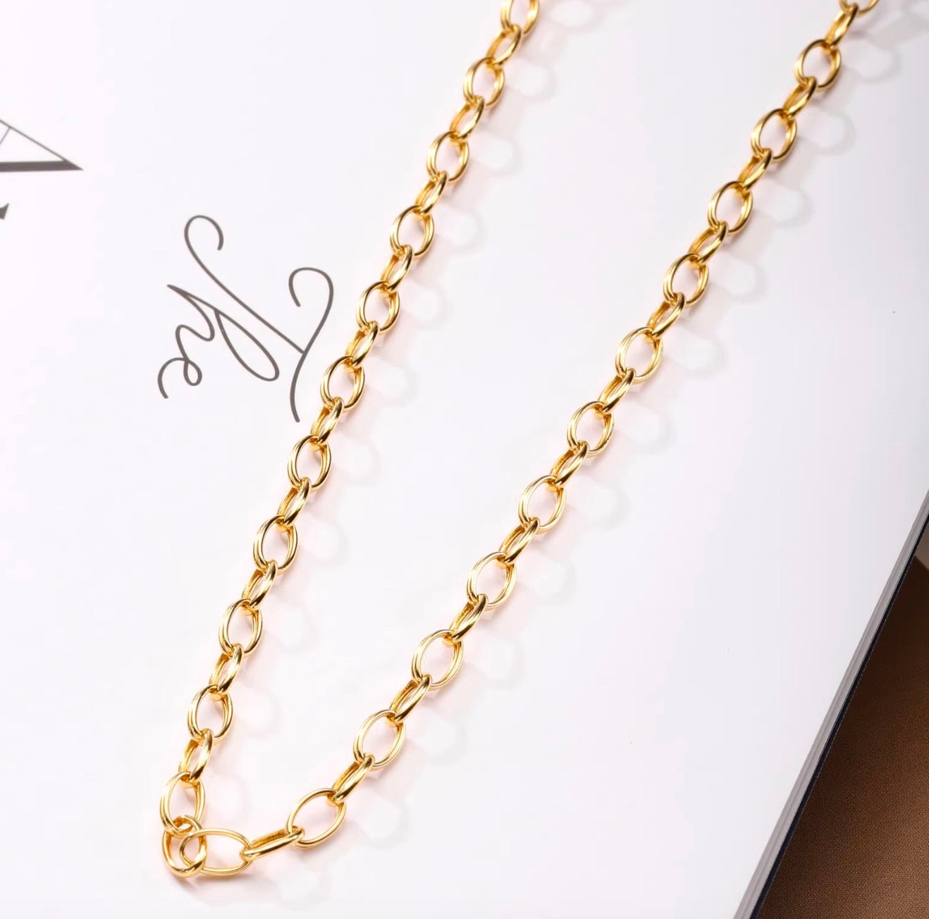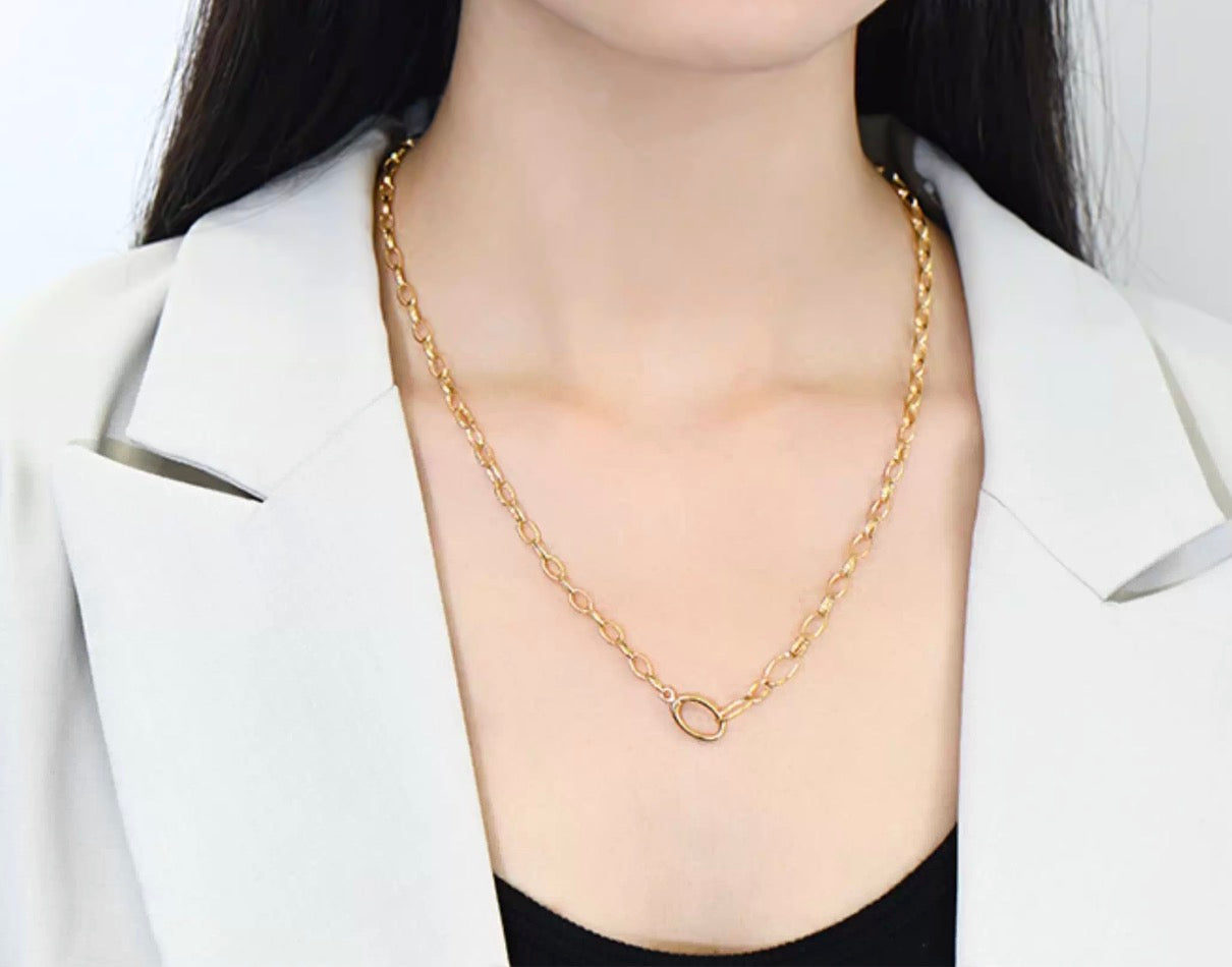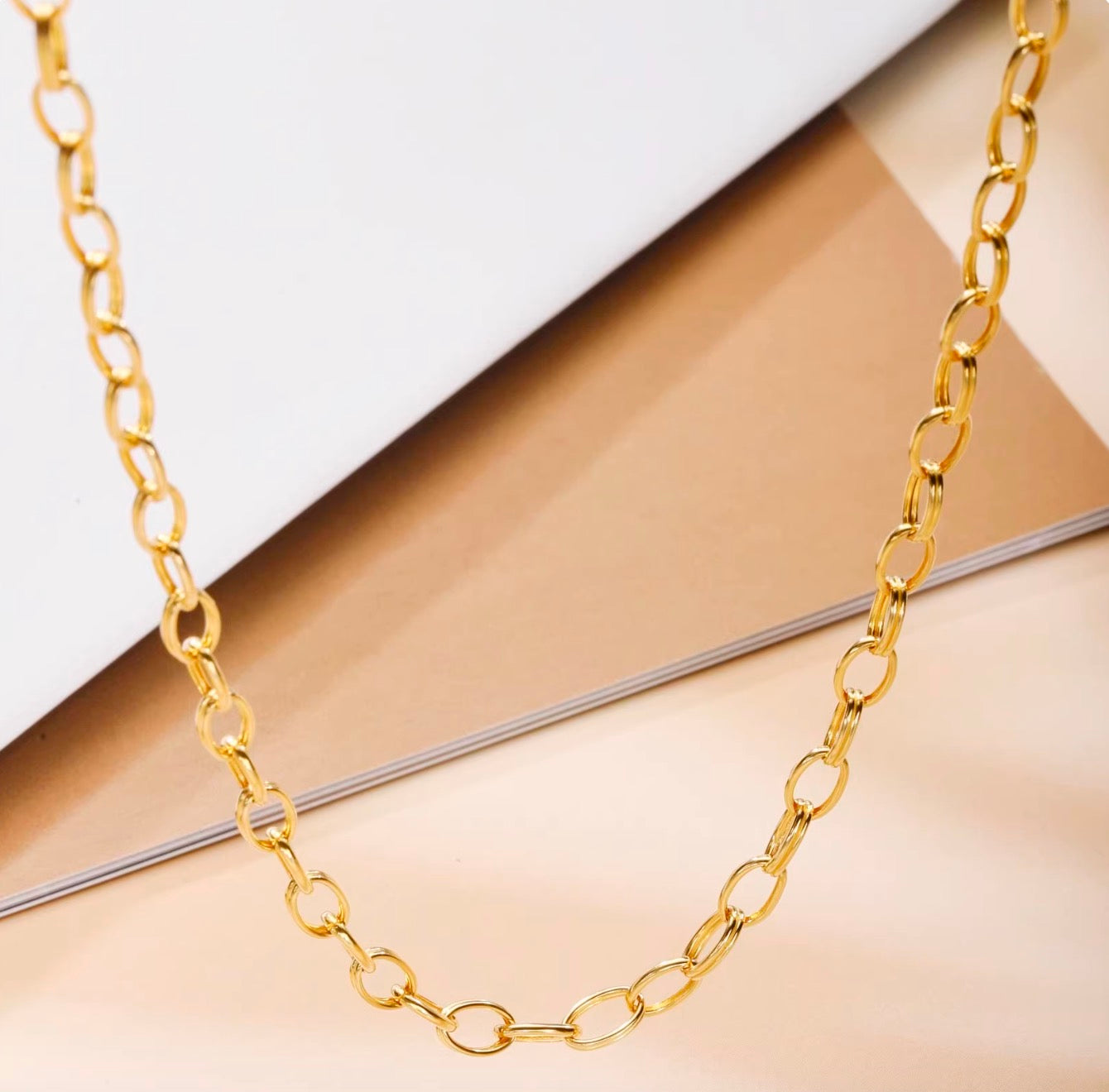 K18YG オーバルリンクチェーン ネックレス 太め メンズ レディース 18K オーバルチェーン 3.8mm 楕円チェーン イエローゴールド