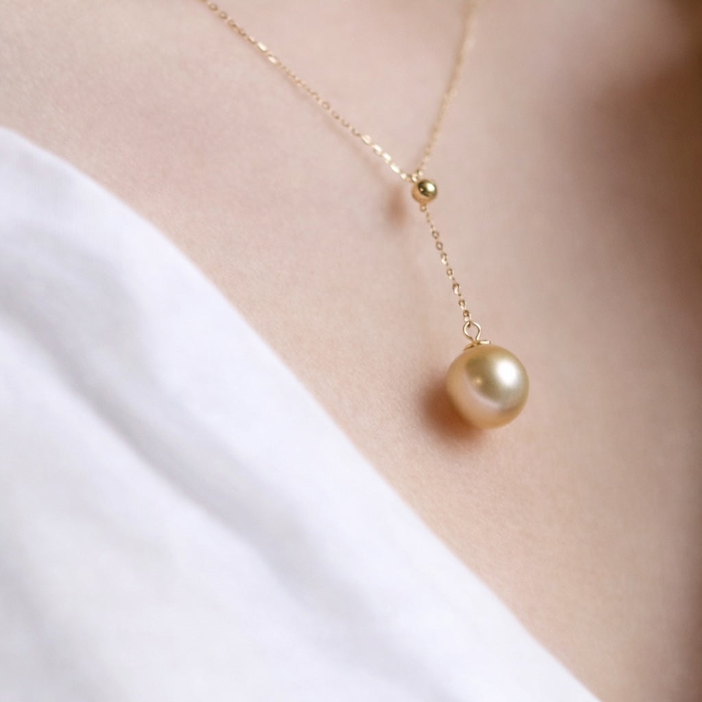 K18YG ゴールデンパール Y字 ネックレス 南洋真珠 パール スライド式 イエローゴールド YG 18K ゴールドパール 金色 真珠 ペンダント