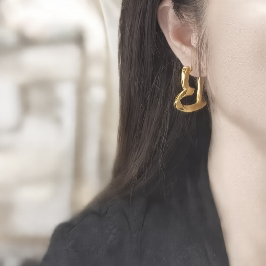 K18YG ピアス フープピアス ハート ツイスト 中空 18k YG 大ぶり 大きい ハートピアス イエローゴールド 中空ピアス