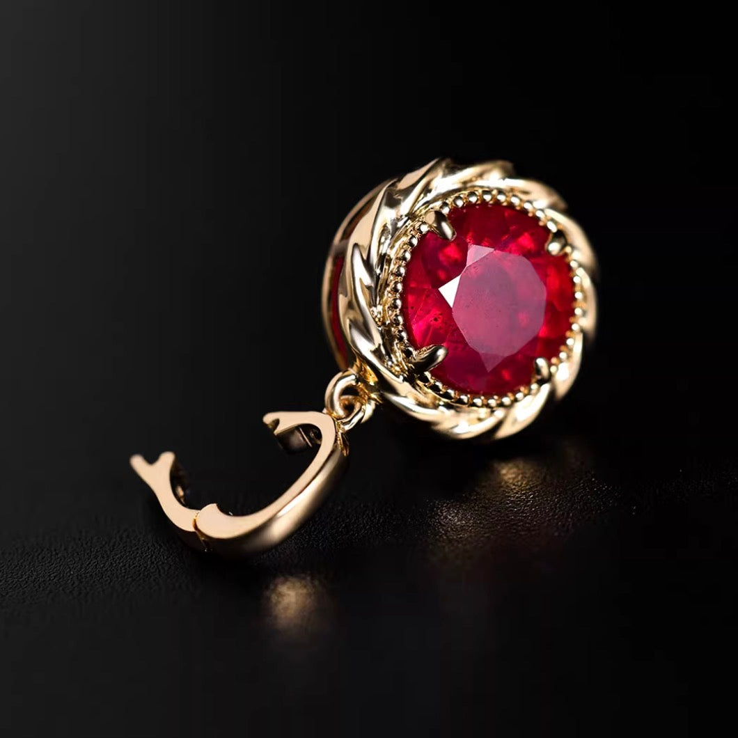 K18YG ピジョンブラッドルビー 1ct ラウンド ペンダント ネックレス 18K YG イエローゴールド チャーム クラスプ バチカン サンフラワー