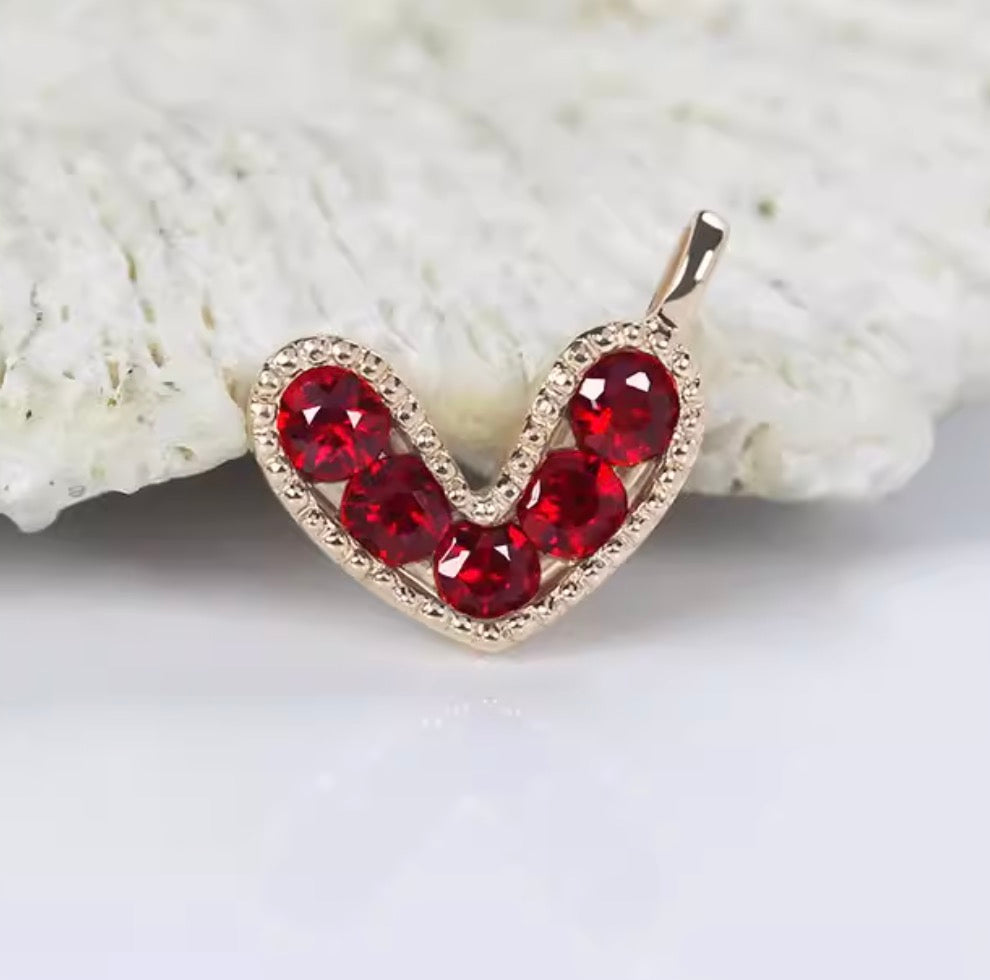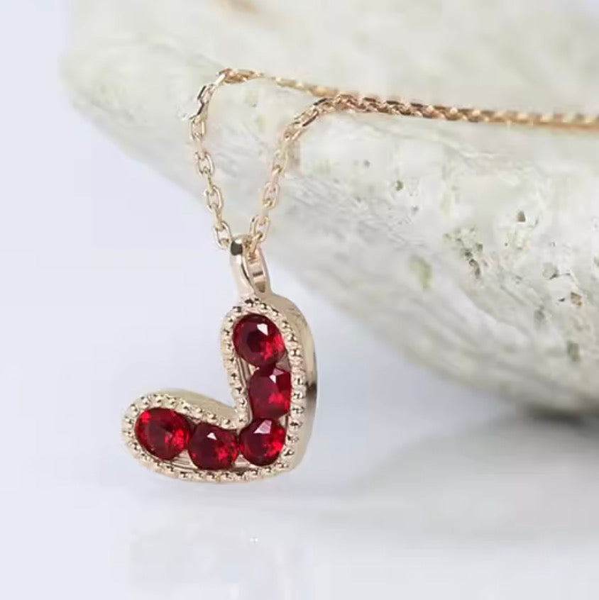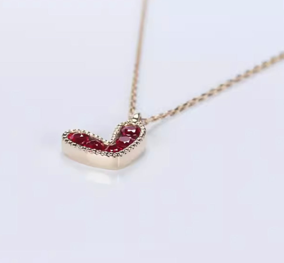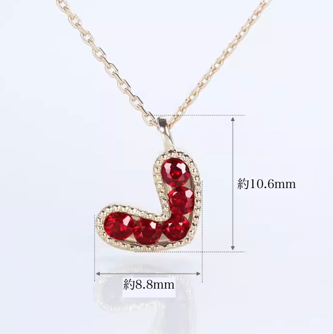 K18YG 天然ピジョンブラッドルビー ハート ペンダント ネックレス 18K イエローゴールド ハート型 小ぶり