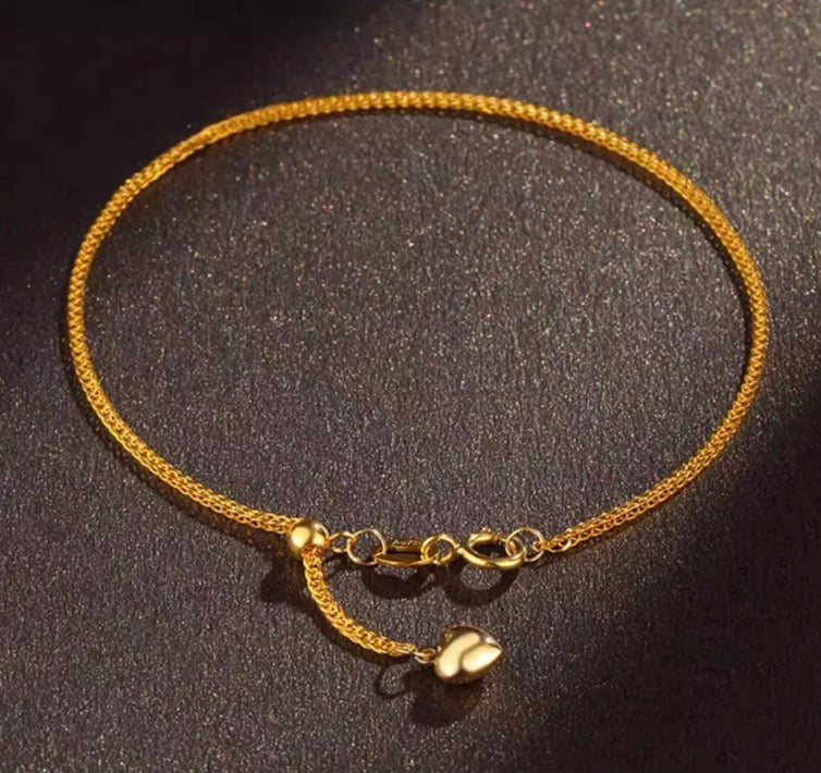 K18YG WG PG ブレスレット 1.5mm~ チェーンブレスレット ショパンチェーン 18k 15cm~ スライド式アジャスター ハートチャーム