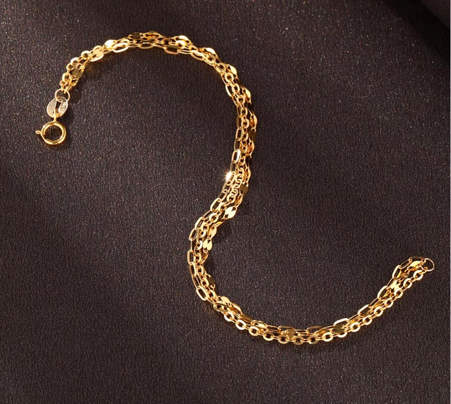 K18YG WG PG 3連 ブレスレット チェーンブレスレット 18k 15cm~ 三連 トリプルチェーン あずきチェーン オーバル ペタルチェーン
